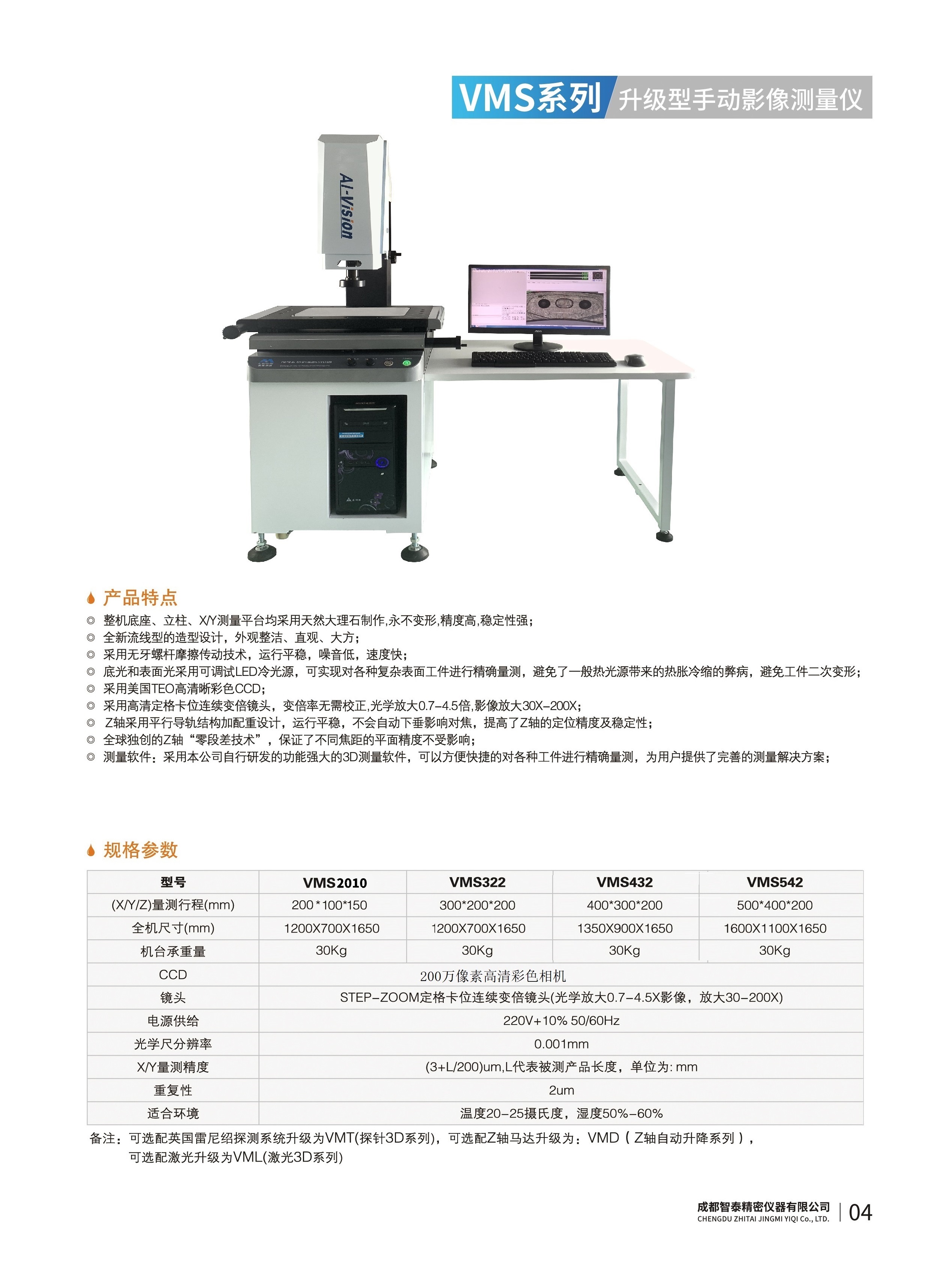 成都智泰精密儀器有限公司專注于精密測量儀器,人工智能,智能制造領域,專業(yè)從事智能視覺自動化檢測解決方案的貿易型企業(yè)。公司成立于2011年,位于天府之國成都,現(xiàn)有行業(yè)精英十余人,辦公倉儲面積200余平米。 公司主要產品為精密光學影像測量儀,精密輪廓形狀測量儀,精密機器人定位系統(tǒng),精密智能視覺尺寸檢測儀器,精密表面缺陷智能檢測設備,工業(yè)工程特種機器人。 公司憑借過硬的技術實力和產品方案,率先進入智能視覺自動化檢測領域,推廣以精密智能視覺自動化檢測為基礎的機器人自動化應用,公司不斷整合上下游的資源,擁有巨大的全產業(yè)鏈優(yōu)勢。客戶群體覆蓋了我國精密制造業(yè)的多數領域,包括航空、航天、軍工、汽車、新能源、光伏、食品,精密電子、精密機械、模具、PCB、LCD、五金、塑膠、醫(yī)療、教育、計量及科研院所等行業(yè)。 公司創(chuàng)新的產品能滿足生產與制造行業(yè)客戶的要求,訓練有素的工程師能及時提供多種技術服務,如解...